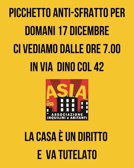 🏠🔥 Visto il silenzio assordante delle istituzioni il picchetto anti sfratto si terrà domani dalle ore 7 in via Dino Col 42 a Genova.