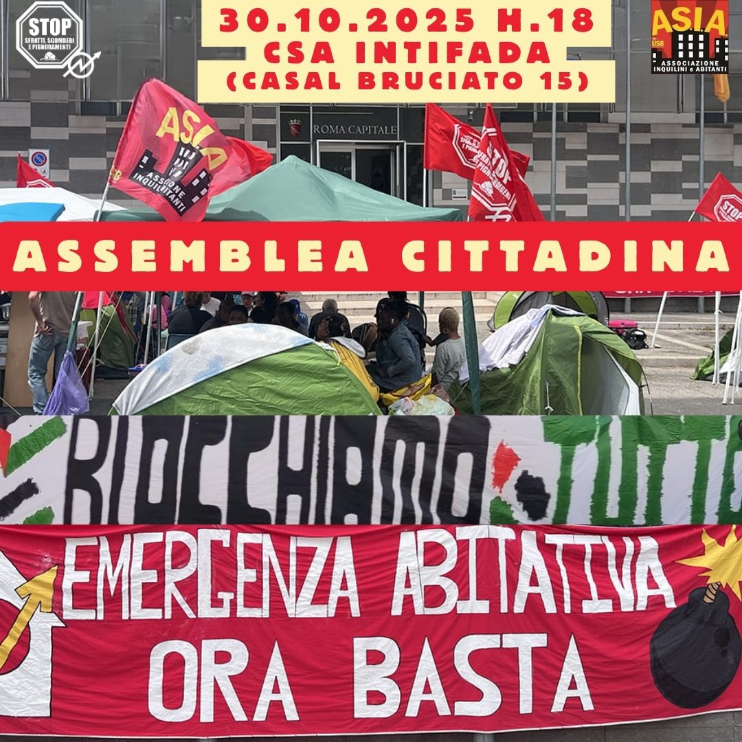 Su questo appello chiamiamo la città all'assemblea che si terrà giovedì 30 ottobre alle ore 18,00 al Centro sociale Intifada in via di Casalbruciato 15.